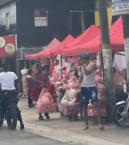 En distintos puntos de Bávaro fue notoria la presencia de parejas, grupos de amigos y compradores de último momento, generando un flujo constante de personas. Los colores característicos de la celebración dominaron vitrinas y puestos de venta, mientras vendedores aprovecharon la jornada para dinamizar sus ofertas en espacios de alta circulación.